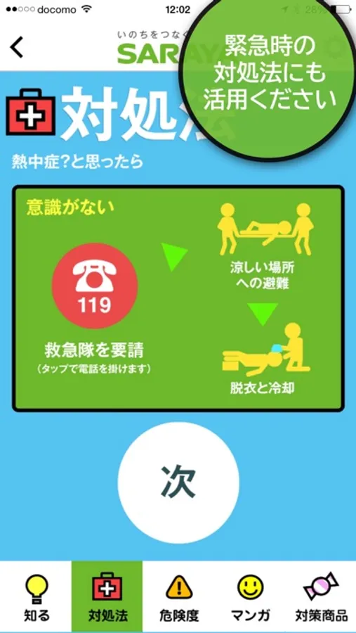 ⇒基礎知識や基本的な予防方法を解説。また、熱中症が疑われる場合の対処法など、いつでもチェック。