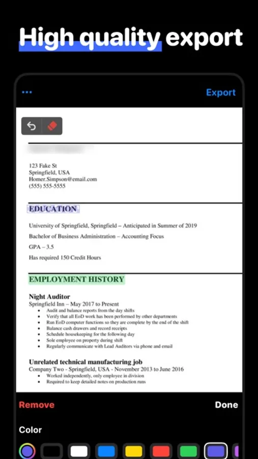 • High-quality export