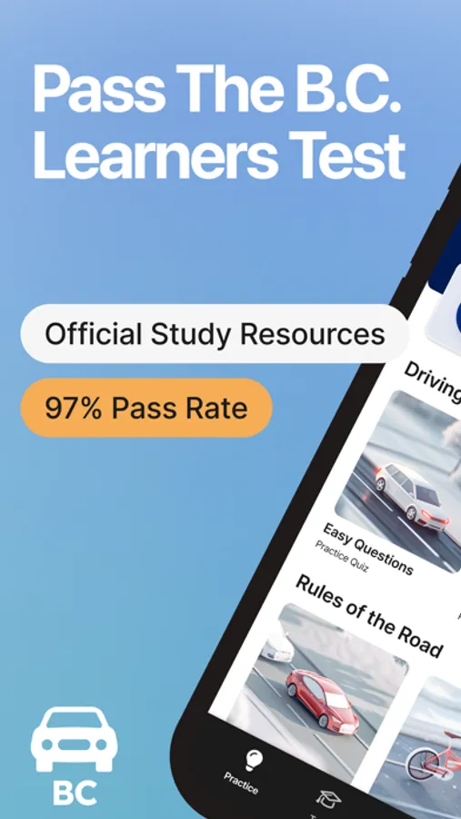 The BC Driving Knowledge Test app is the ultimate tool to help you succeed in your BC Drivers Test. With comprehensive practice quizzes, accurate ICBC Knowledge Test questions, and features designed to improve your study habits, you’ll be well-prepared to ace your test. Download the app today and take the first step towards getting your L License or Class 5 license.