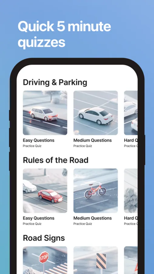 16+ Practice Quizzes: short 5 minute quizzes split up by difficulty make practicing easy. You’ll get your L License, and have fun while doing it.