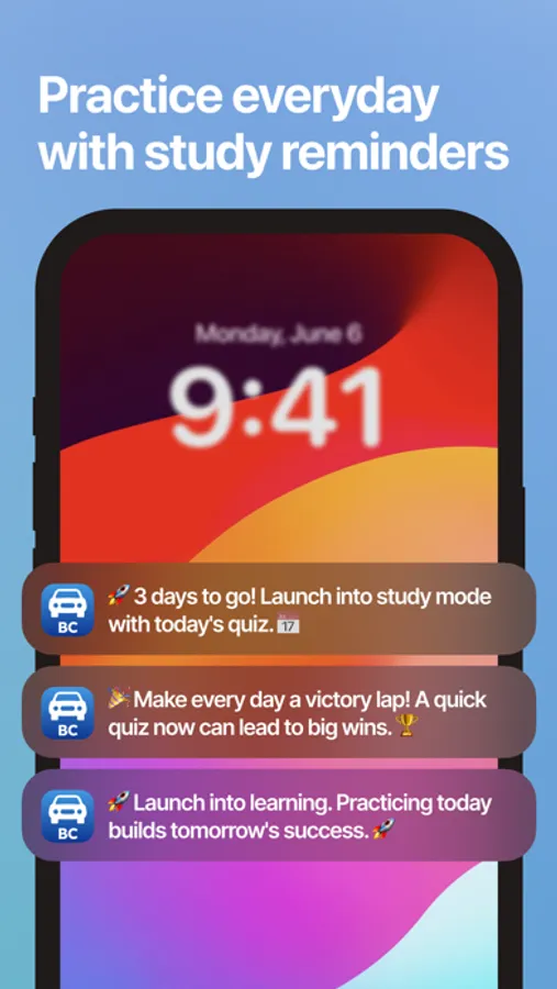 Study Notifications: our fun reminders will help you build a daily habit of studying for the BC driving knowledge test.
