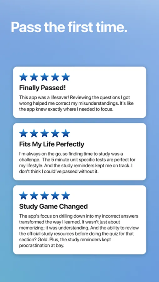 Review Section: the app automatically saves every question you miss, letting you focus on your weak areas and improve your chances of passing the Class 5 knowledge test.