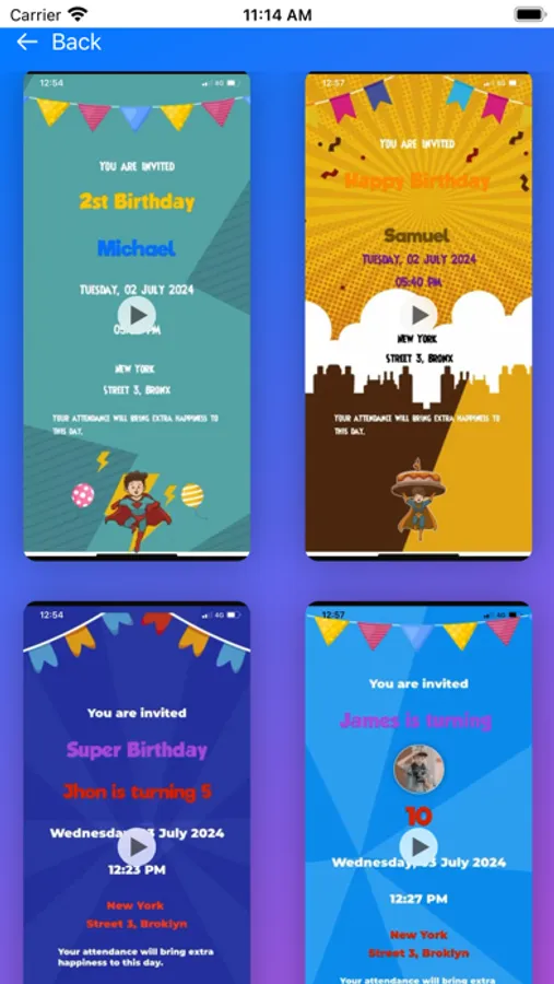 Create magical birthday invitations with ease using the Birthday Invitation Maker app! Perfect for boys and girls of all ages, this fun and intuitive app lets you design personalized video invitations that will make your child's birthday extra special.