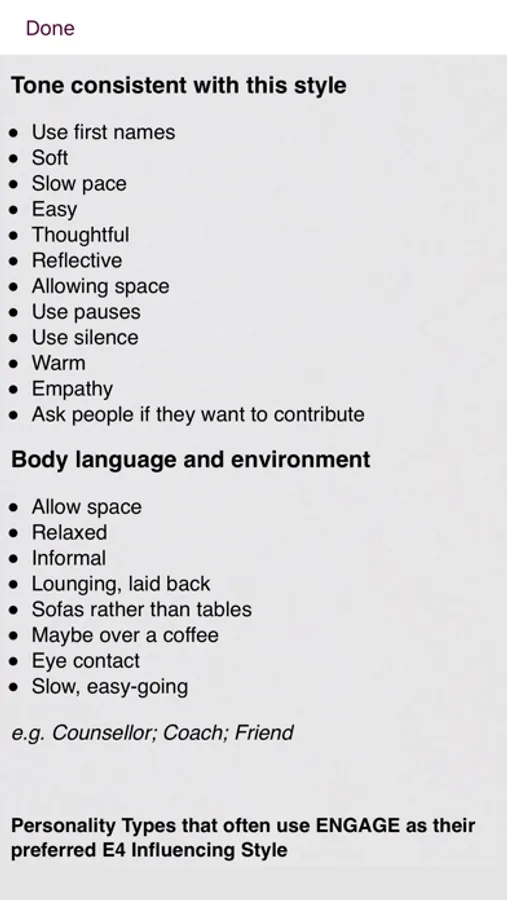 (iii) Understand the main ways to influence other people for great joint outcomes, using the E4™ Influence Styles model - EXPLAIN, EXERT, EXCITE, ENGAGE.