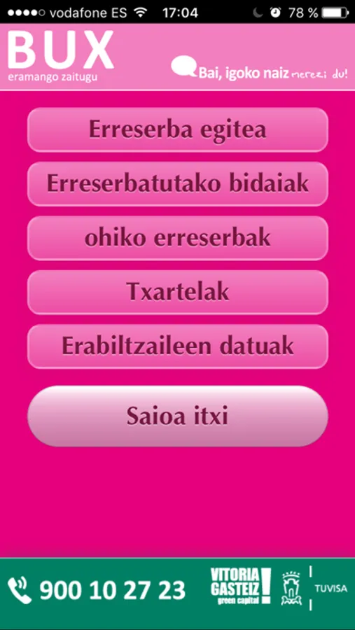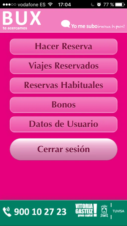 Mediante esta aplicación se pueden crear nuevas reservas, gestionar las existentes o ver su estado actual, modificar datos del usuario, introducir bonos. También permite verificar la hora exacta de llegada del autobús para cada servicio.