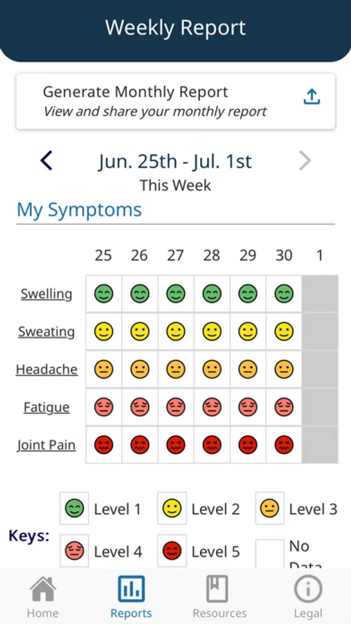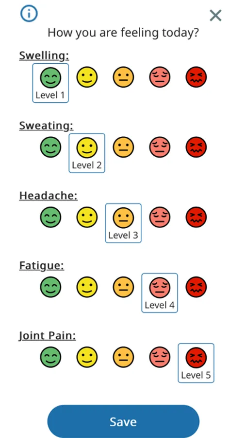 •Track how the 5 symptoms of acromegaly (sweating, swelling, headaches, fatigue, and joint pain) are affecting you each day