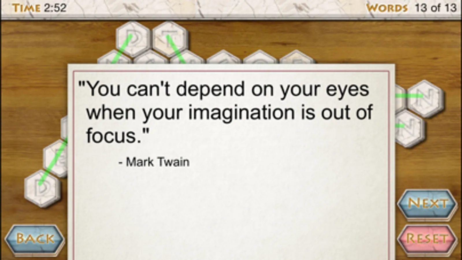 Ravels - Wisdom introduces players to the Ravels family with a free game that incorporates "words of wisdom" quotations handed down through the ages. Ravels - Wisdom contains 30 puzzles in 3 challenge levels, with quotations from those on the world stage like Winston Churchill, Mark Twain, Maya Angelou, and Warren Buffett.