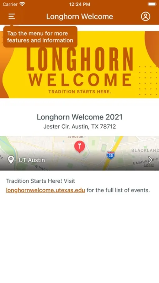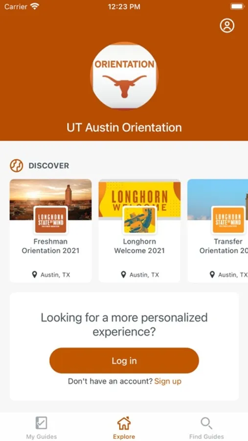 Welcome to The University of Texas at Austin! The UT Austin Orientation app allows you to access guides for various events, including Freshman and Transfer Orientation. The app also includes resources that can help you in your transition to the university.