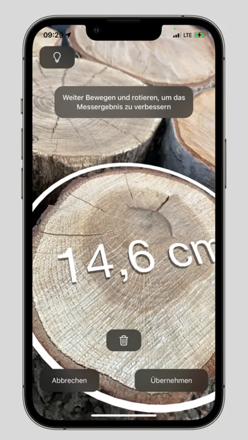- Integriertes Maßband (Augmented Reality*) zur einfachen Vermessung von Einzelstämmen.