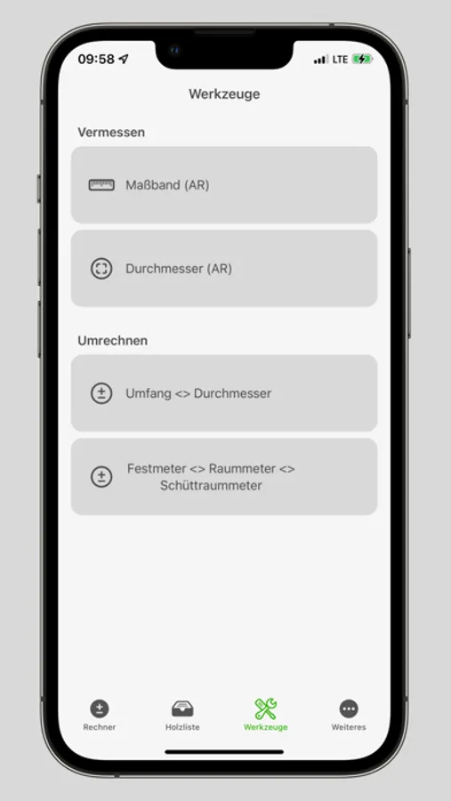 - Verschiedene Umrechnungsarten z. B. Festmeter zu Raummeter zu Schüttraummeter und Umfang zu Durchmesser.