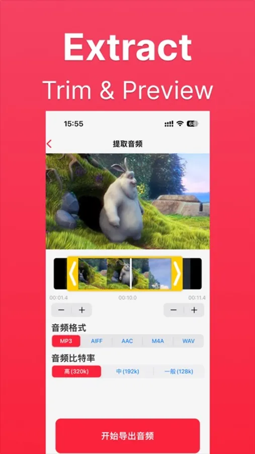- Convert video to audio(e.g., MP3, AAC, and more formats), supporting trimming and multiple formats conversion.