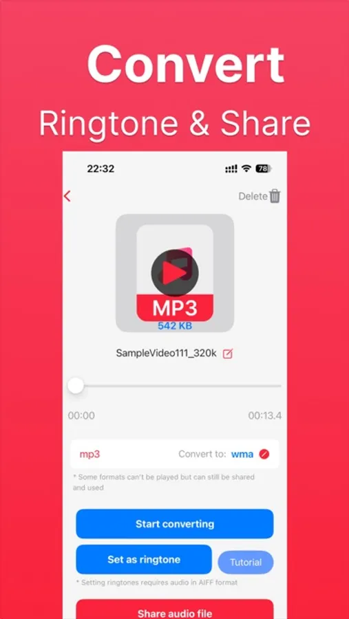 Convert video to mp3, audio format convert, audio trim, set ringtone(Support From Music Library)