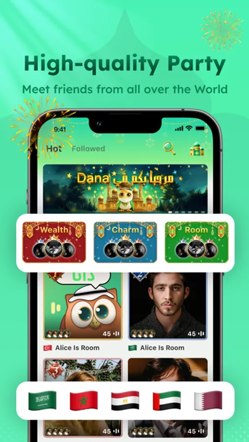 DANA is a very popular immersive voice chat and social entertainment application. Chat with your new and old friends anywhere and anytime every day. Here, you can meet people you like, create your own exclusive voice chat room or join various types of voice rooms. Here, you can chat, have parties, make new friends and share happiness.
