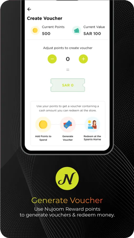 • Redemption of points for a voucher is possible at any time from the NUJOOM kiosk or the customer service Desk (CSD).