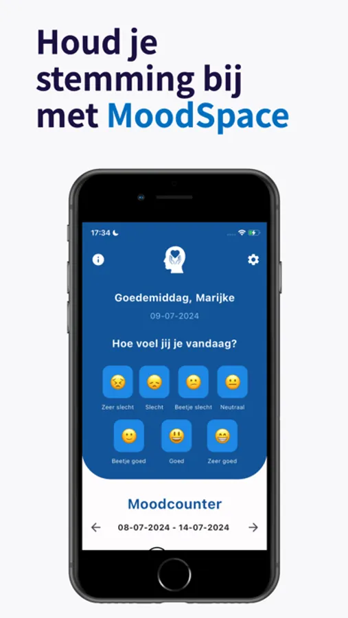 MoodSpace is de applicatie die gebruikers beter inzicht geeft in hun mentale gezondheid. Door stemming en emoties bij te houden via zelf-gerapporteerde data, genereert MoodSpace analyses die trends en patronen in de mentale gezondheid van gebruikers zichtbaar maken. Zo helpt de app om bewustzijn te creëren en ondersteuning te bieden in het beheren van emotioneel welzijn.