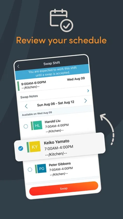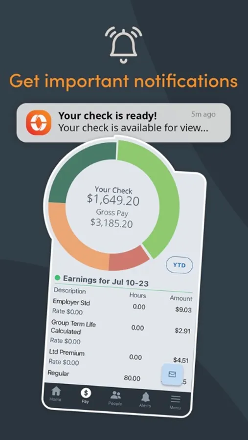 - Receive push notifications for activities like time-off request approvals, checks becoming available, chats, and more