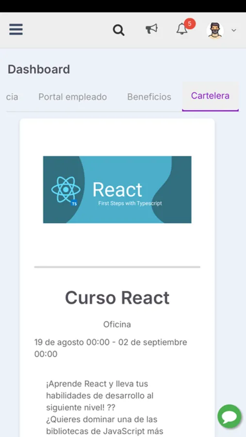 Cartelera Interactiva: Mantente informado con los últimos anuncios y novedades de tu empresa en tiempo real.