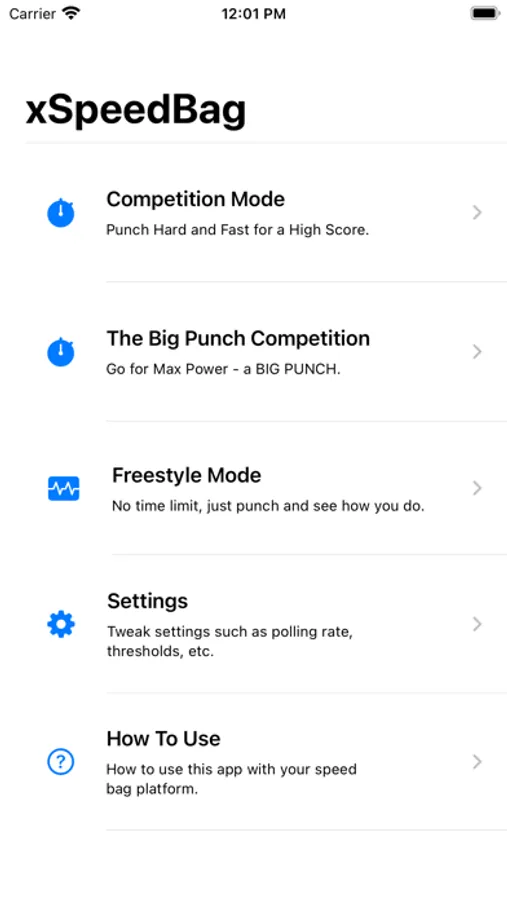 xSpeedBag uses the Accelerometer and Gyro sensors of your iOS device to score your Speed Bag punching workout. The HARDER and FASTER you punch, the higher the score. The iOS device should be placed on top of the speed bag drum (the circular board) IN A SECURE FASHION. The Magic Keyboard is a great option for mounting an iPad. Once the device is securely mounted, choose a competition type (or Freestyle Mode) and start punching. Your speed bag punching performance will be graded on the speed and power with which you are hitting the bag. Please note that different platforms, different size bags, and different mounting of the iOS device will influence the score. A bigger bag will result in a bigger score because it will induce more movement in the platform. WARNING: DO NOT PUNCH without first securing the device. It will eventually fall off the platform! Be extra careful with phones, as they weigh less and will be more susceptible to moving around.