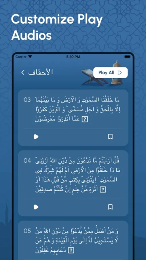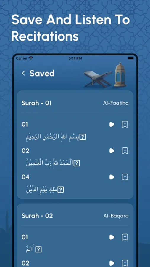 Reciter Flexibility: Switch between reciters and access personalized recitation lists.