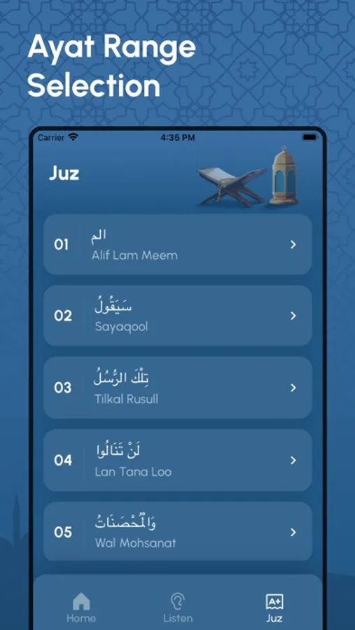 Ayat Range Selection: Test your memorization over selected ranges using voice recordings.