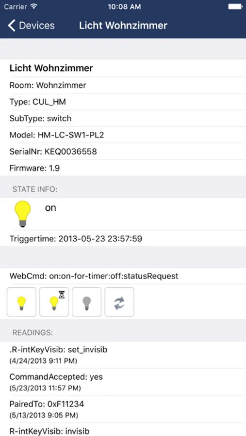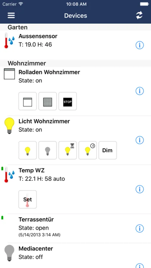 - Display the status and basic information of all hardware devices (according to the FHEM configuration, sorted by room)