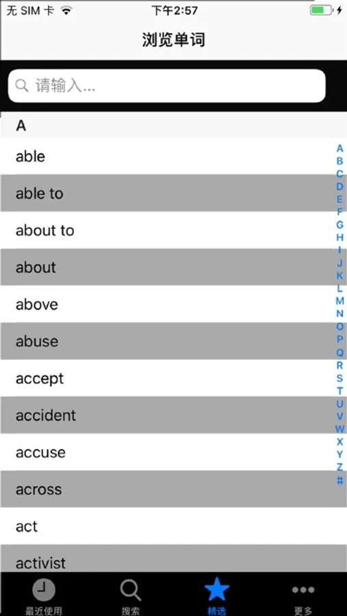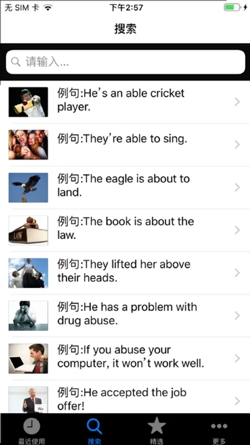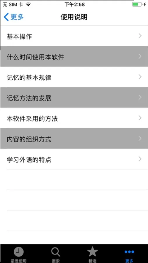 本产品利用了iphone在操作界面上的优势,将学习内容以“抽认卡”的方式组织,操作方式接近实物卡片的操作方式,在操作过程中自动记录您对卡片的记忆情况。