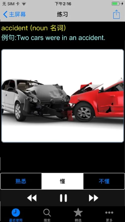 本产品的学习内容以“抽认卡”为基本单元,一组抽认卡组成一个场景,需要您做选择操作,来告诉本产品您是否记得。