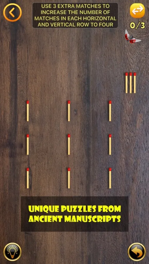From the countless number of puzzles with matches the author has selected for you 100 most interesting, extraordinary and unique logic tasks. All of them are presented in the game "Golden Matches''.