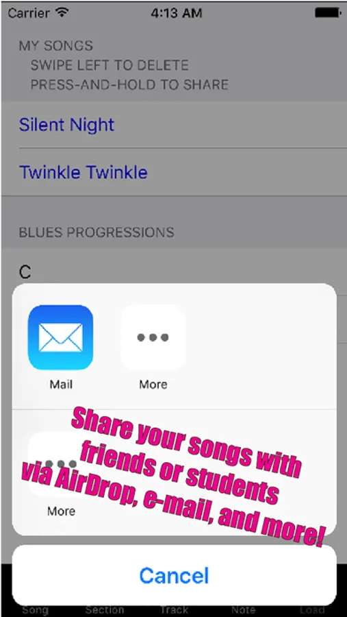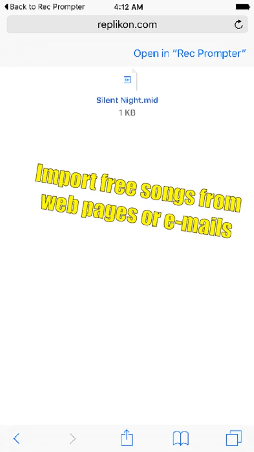 Recorder Prompter also lets you share music files between users who are in the same room—with support for AirDrop. If you’re an instructor, share lesson files with your students using AirDrop—no need to know anyone’s e-mail address or phone number! As long as they are near you (in the same room) and have AirDrop enabled, they can receive the files you share instantly! If you’re a student, or in a band, share songs instantly with your fellow musicians—so everyone is on the same page!