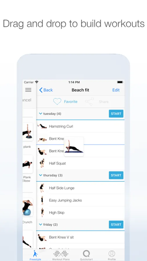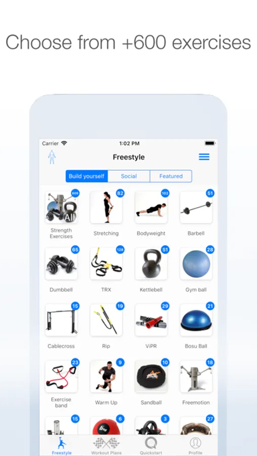 • Build your own workouts with a simple drag and drop interface. Choose from over 700 exercise videos with equipment like Trx, Sling, Kettlebell, Bodyweight, Vipr, Foam roller, Dumbbell, Gym Ball, Barbell, Resistance Band, Bulgarian Bag and more.