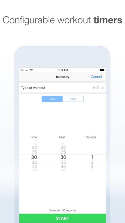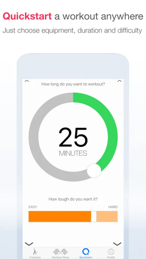 • Quickstart - Simply choose equipment, intensity and time to generate a custom workout.