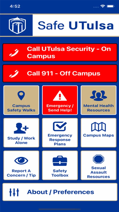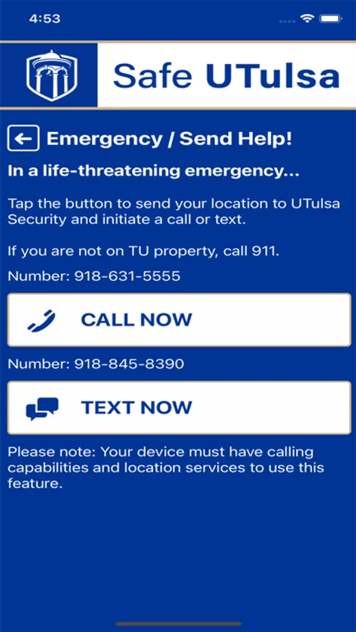 - Emergency Button: Send your location to The University of Tulsa security in real-time in case of a crisis