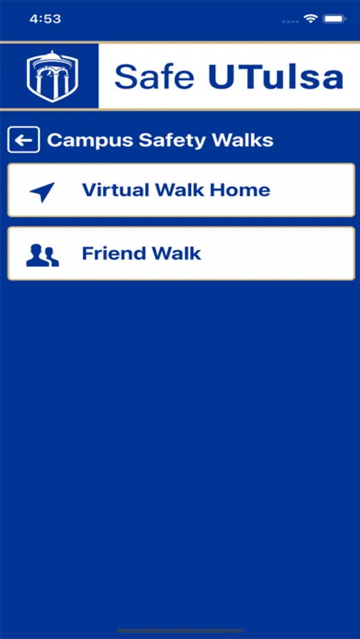 - Virtual WalkHome: Allow Campus Security to monitor a user’s walk. If a user feels unsafe when walking on campus, they can request a Virtual WalkHome and a dispatcher on the other end will monitor their journey until they reach their destination.