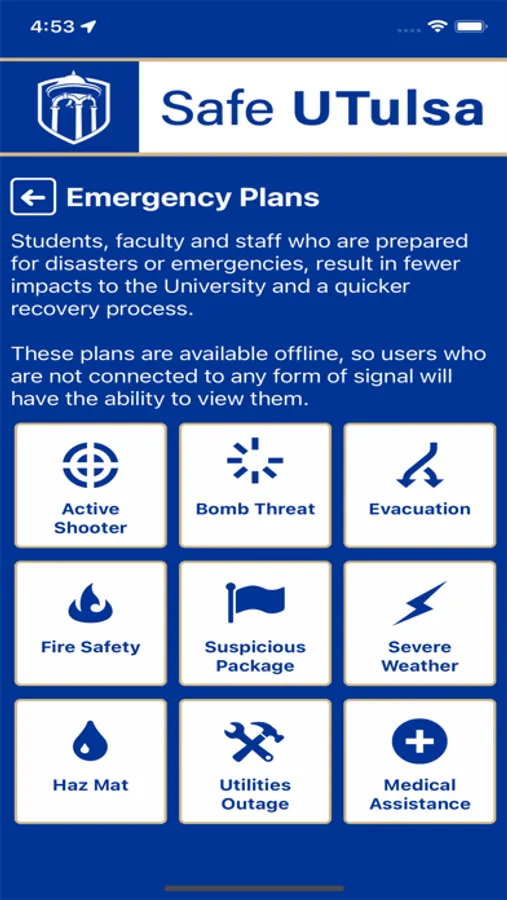 - Safety Notifications: Receive instant notifications and instructions from The University of Tulsa safety when on-campus emergencies occur.