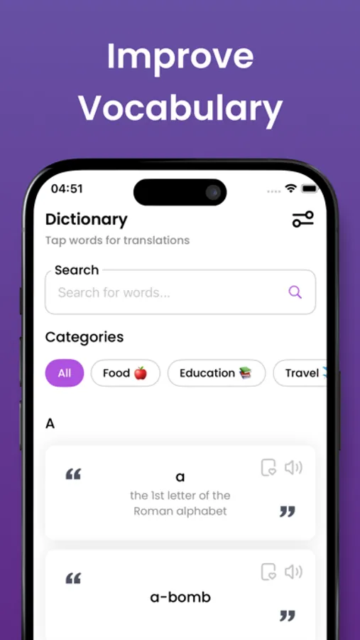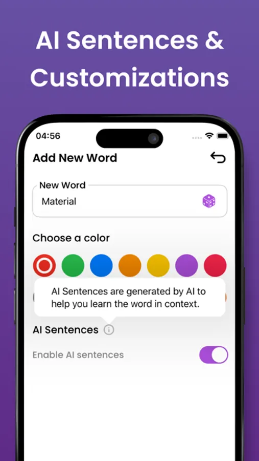 • Smart Learning: Our AI creates example sentences that help you understand and use new words in context.