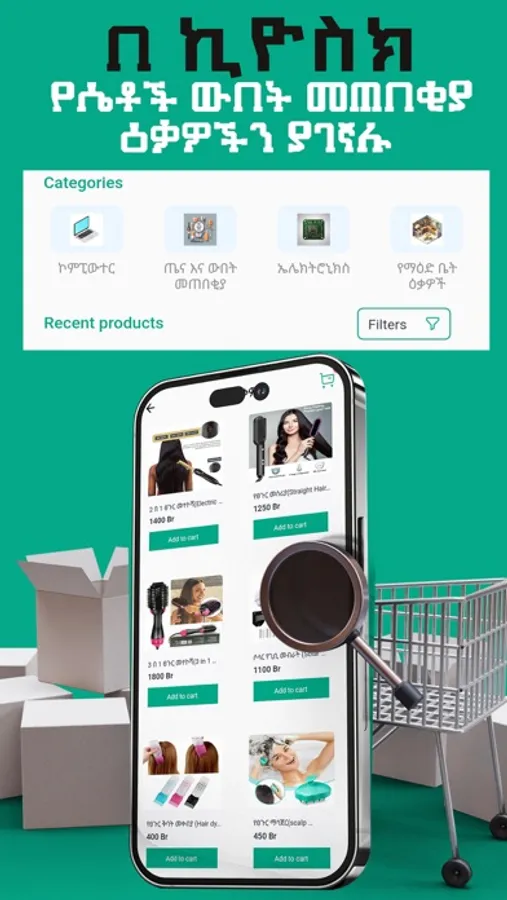 Whether you're shopping for the latest fashion trends, upgrading your electronics, or stocking up on household essentials, Kiosk is your trusted companion for a seamless, secure, and personalized online shopping journey in Ethiopia. Download the app now and embark on a new era of convenient and rewarding e-commerce experiences with Kiosk.