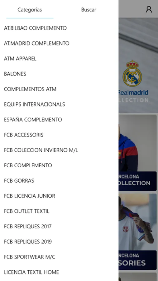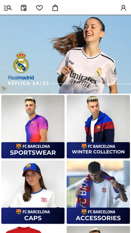 Textil: encuentra réplicas de camisetas de fútbol, camisetas de poliéster y algodón, sudaderas, ropa de invierno, entre otros. Cada prenda está diseñada con los colores, emblemas y escudos oficiales de los equipos. Ofrecemos una amplia gama de equipaciones del FC Barcelona y del Real Madrid, incluyendo camisetas del Barça y camisetas del Real Madrid, tanto para entrenamiento como para el día a día.