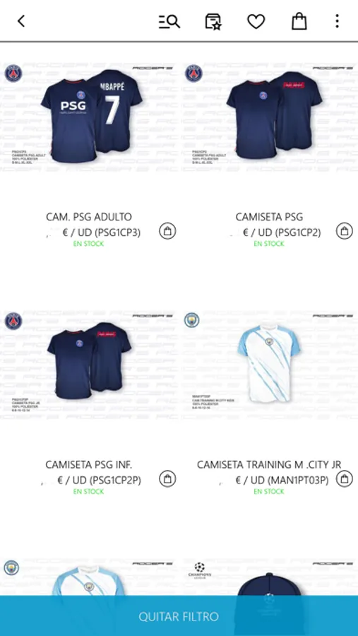 Nuestra aplicación móvil está diseñada para ofrecer una experiencia de compra cómoda, rápida e intuitiva. La APP está dirigida a todas las empresas de Europa que quieran adquirir nuestros productos. Encontrarán una amplia gama de productos de fútbol que constantemente se va ampliando. Réplicas de Camisetas de Fútbol, Camisetas del Barça y Camisetas del Real Madrid y también las réplicas de las Equipaciones del Real Madrid y del Barcelona, entre muchos otros artículos. Contamos con productos oficiales y licenciados de equipos como: FC Barcelona, Real Madrid, Manchester City, Liverpool FC, Arsenal FC, Chelsea FC, Paris Saint-Germain (PSG).