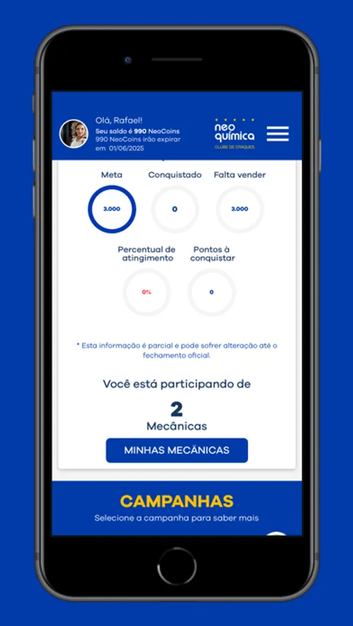 Mais de 3.000 participantes já estão pontuando com o Clube de Craques. Todo mês uma campanha diferente para você conquistar até 2.000 Neocoins e resgatar prêmios incríveis. Cada Neocoin equivale a R$ 1,00.