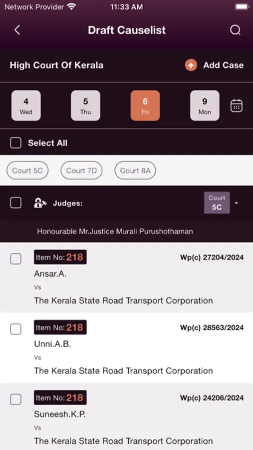 Automatically receive cause lists for all district courts and the High Court of Kerala. No need to manually check websites or boards—your daily schedule comes to you.
