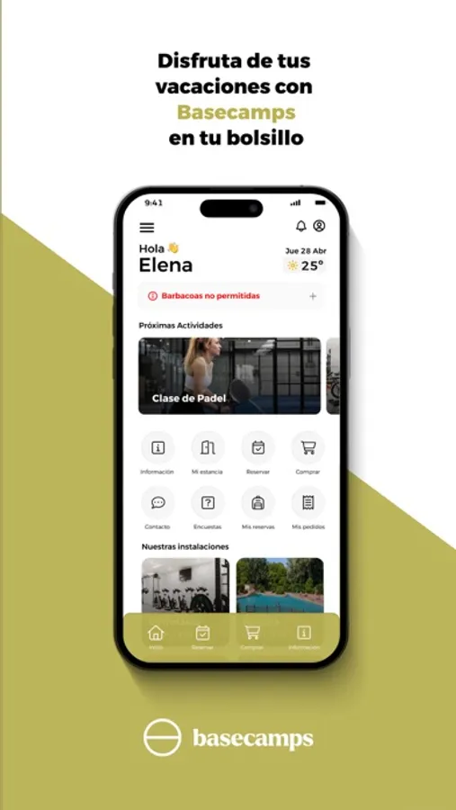 Con nuestra App tendrás el camping en el bolsillo. Tras registrar tu estancia y elegir tu idioma, obtendrás acceso a todas las actividades, servicios y productos del complejo desde un único sitio, a través del cual podrás efectuar reservas y pagos de forma sencilla. Además, podrás solicitar labores de mantenimiento, notificar incidencias y valorar aquellos servicios o actividades en las que hayas participado. Para vivir la experiencia completa del camping, ¡descárgate nuestra App!