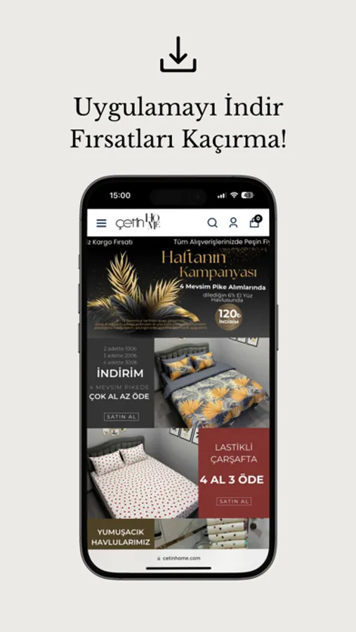 Çetinhome mobil uygulaması ile en son trendleri, avantajlı fiyatları ve özel indirimleri kaçırmayın. Kolay ve güvenli alışveriş deneyimi için hemen uygulamamızı indirin!
