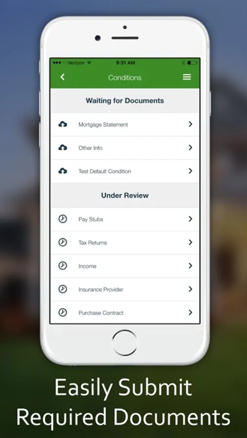 - Use the Conditions tool to submit items to your Loan Officer to meet your loan qualifications
