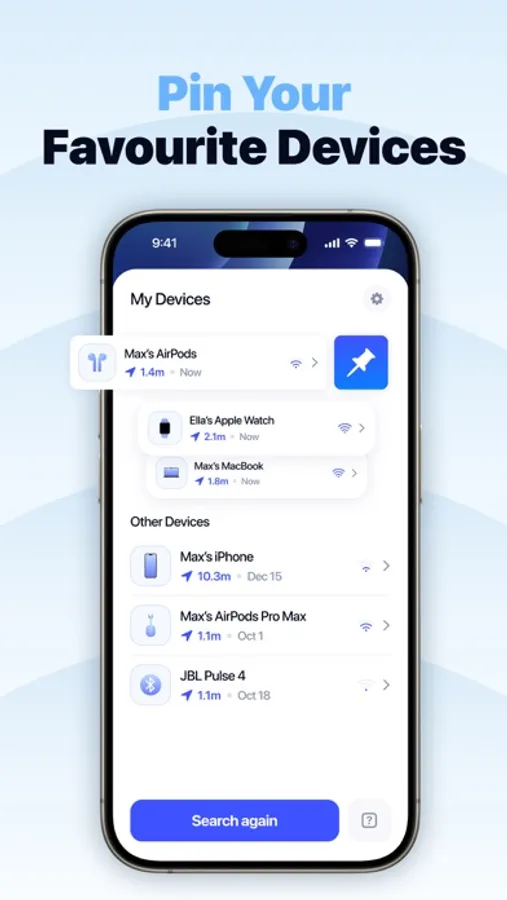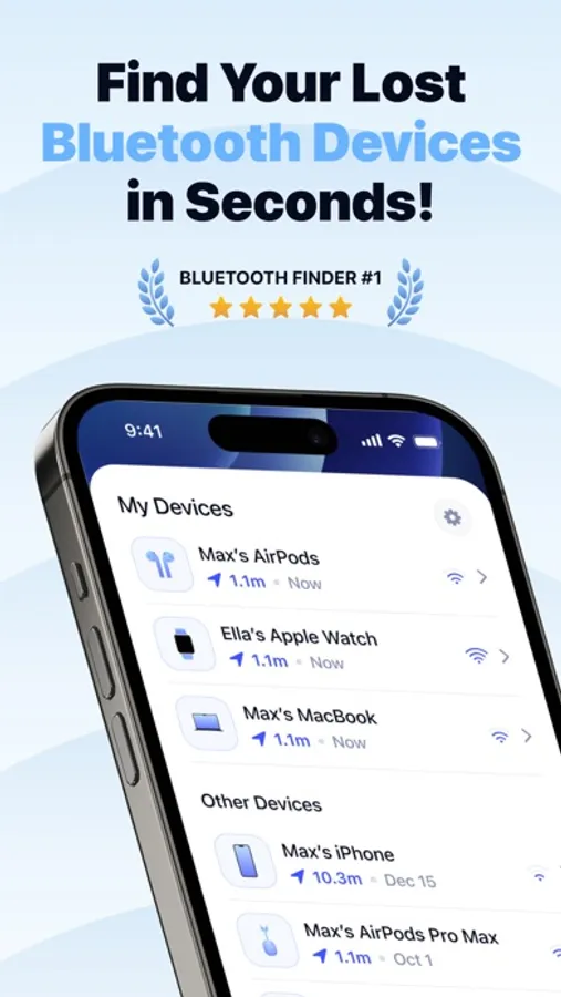 Our app helps you quickly find misplaced or lost Bluetooth devices, such as AirPods, iPhones, Apple Watches, Bose products, Powerbeats Pro, Beats Studio, and more. Similar to an AirTag, it saves you money by preventing the need to replace lost devices. It's perfect for situations when you or a family member can't locate a device.