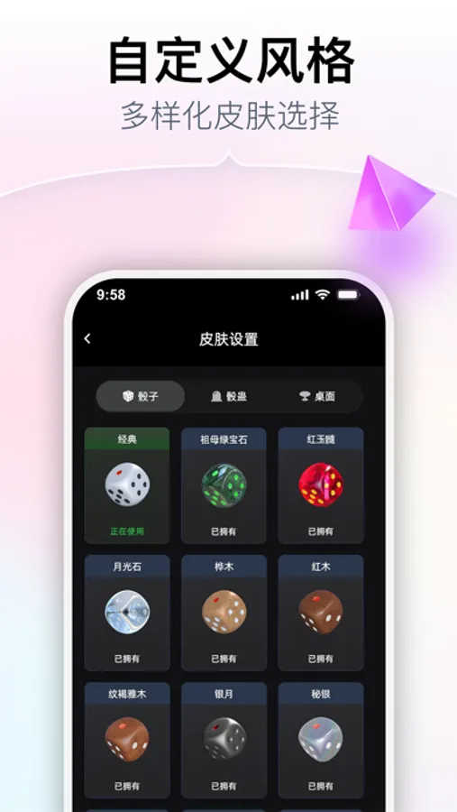 【超多皮肤】几十种皮肤随心换,根据喜好选择骰子、骰蛊、桌面的风格搭配。