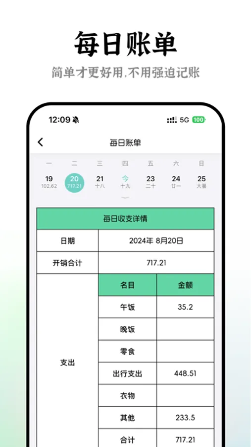 5、每日收支表