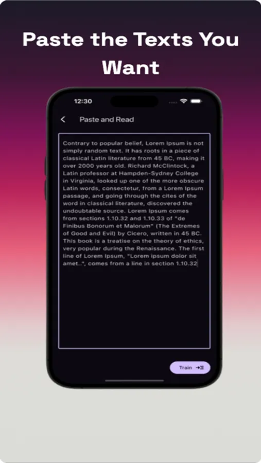 In addition to improving your READING SPEED, EyzRead offers PERSONALIZED READING TRAINING. Whether you're a beginner or an experienced reader, the app’s tailored approach helps you practice HOW TO SPEED READ and provides FAST READING techniques that guarantee improvement. By using the app regularly, you'll enhance your speed and comprehension, answering common questions like "HOW DO YOU SPEED READ?" and "HOW TO READ QUICKLY?"