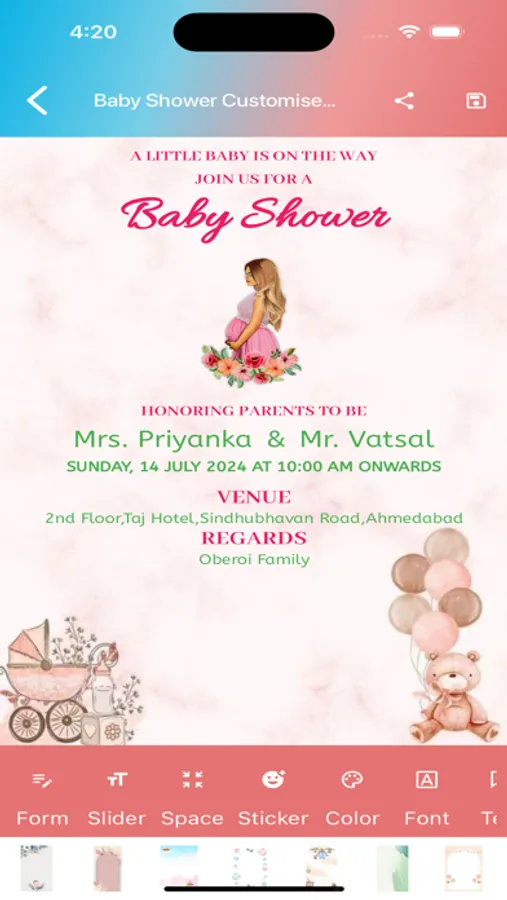 Effortless Sharing: Share your baby shower greetings, photo frames, and cards directly from the app to social media platforms, messaging apps, or email. Spread the joy and excitement of baby showers with friends and family, no matter where they are.