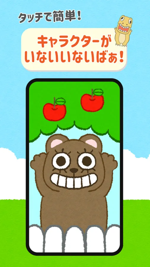 「いないいないばあっ!」は、赤ちゃんや幼児が楽しめる、いないいないばあをテーマにしたアプリです。タッチ1つでキャラクターたちがいないいないばあをしてくれ、子どもたちに予想外の「驚き」と「ワクワク」を提供するアプリです。