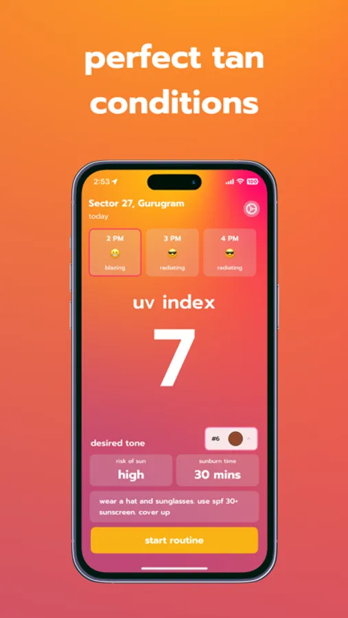 The fastest way to tan your body using the Beam tanning app. The Beam tanning app will give you the most customized routine based on your current location uv index to get the best possible tan as fast as possible. It will also suggest you ways to prevent sunburn and minimize the risk of sun. Remember to always use a sunscreen when going out in the sun. The customized routine and sun exposure prevention suggestions are only available with an additional paid in-app subscription. UV-Index based on current location is free to use for all users.